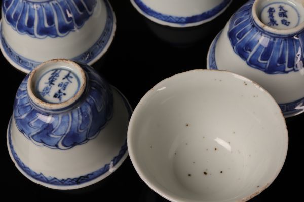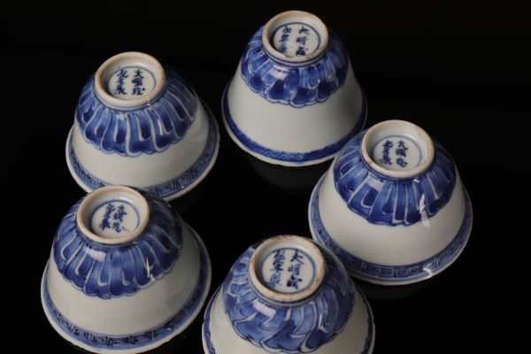 【若福】大明成化年製『腰捻茗碗』中国煎茶碗五客 共箱付 保証品 煎茶道具