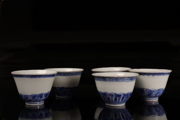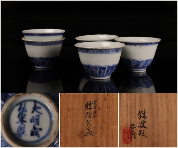 原文:【若福】大明成化年製『腰捻茗碗』中国煎茶碗五客 共箱付 保証品 煎茶道具
