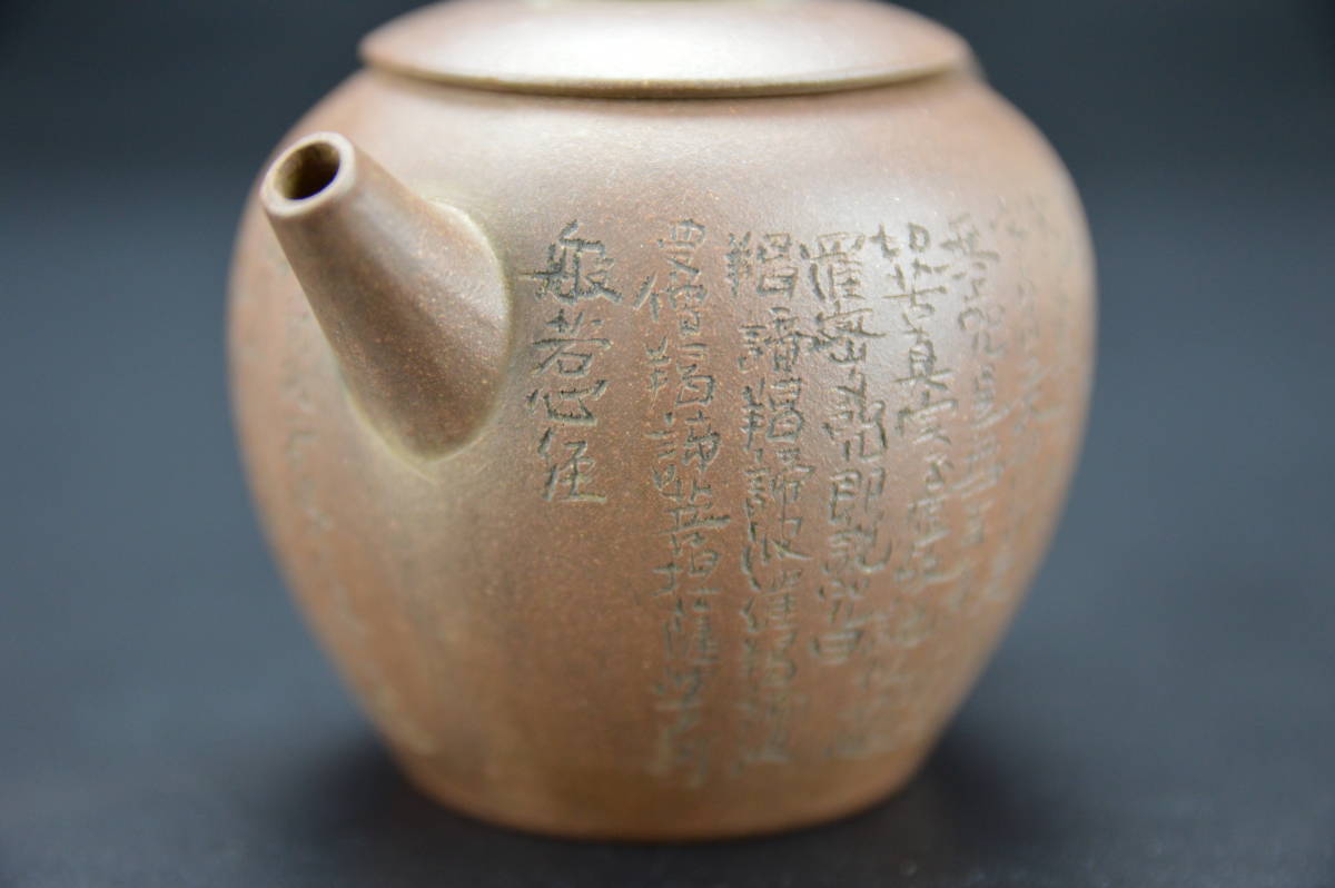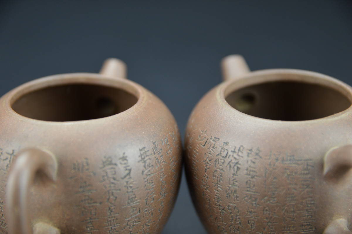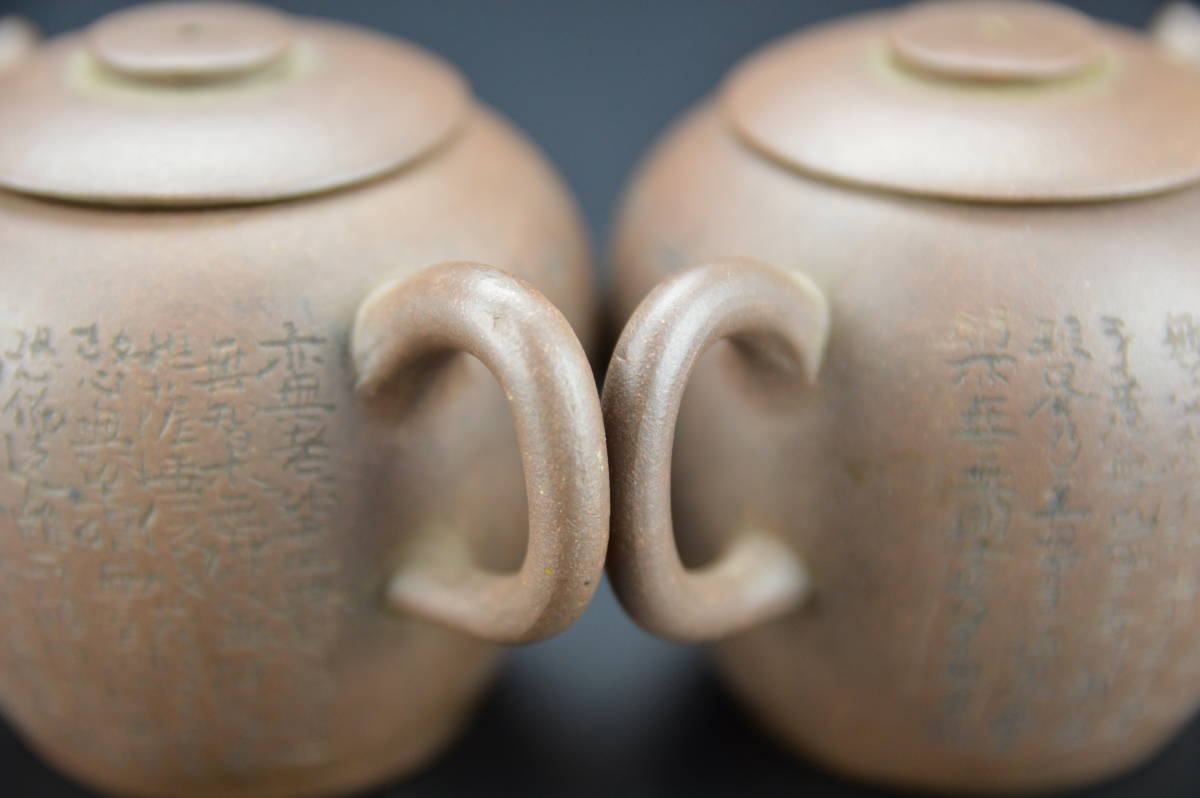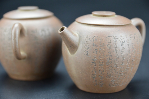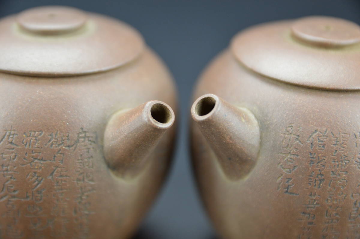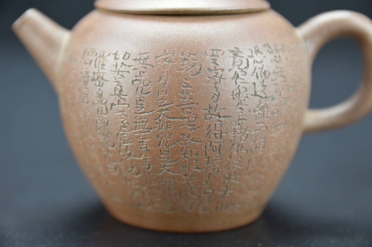 原文:【白翼】 般若心経彫 紫泥急須 一対 ★ 煎茶道具 唐物